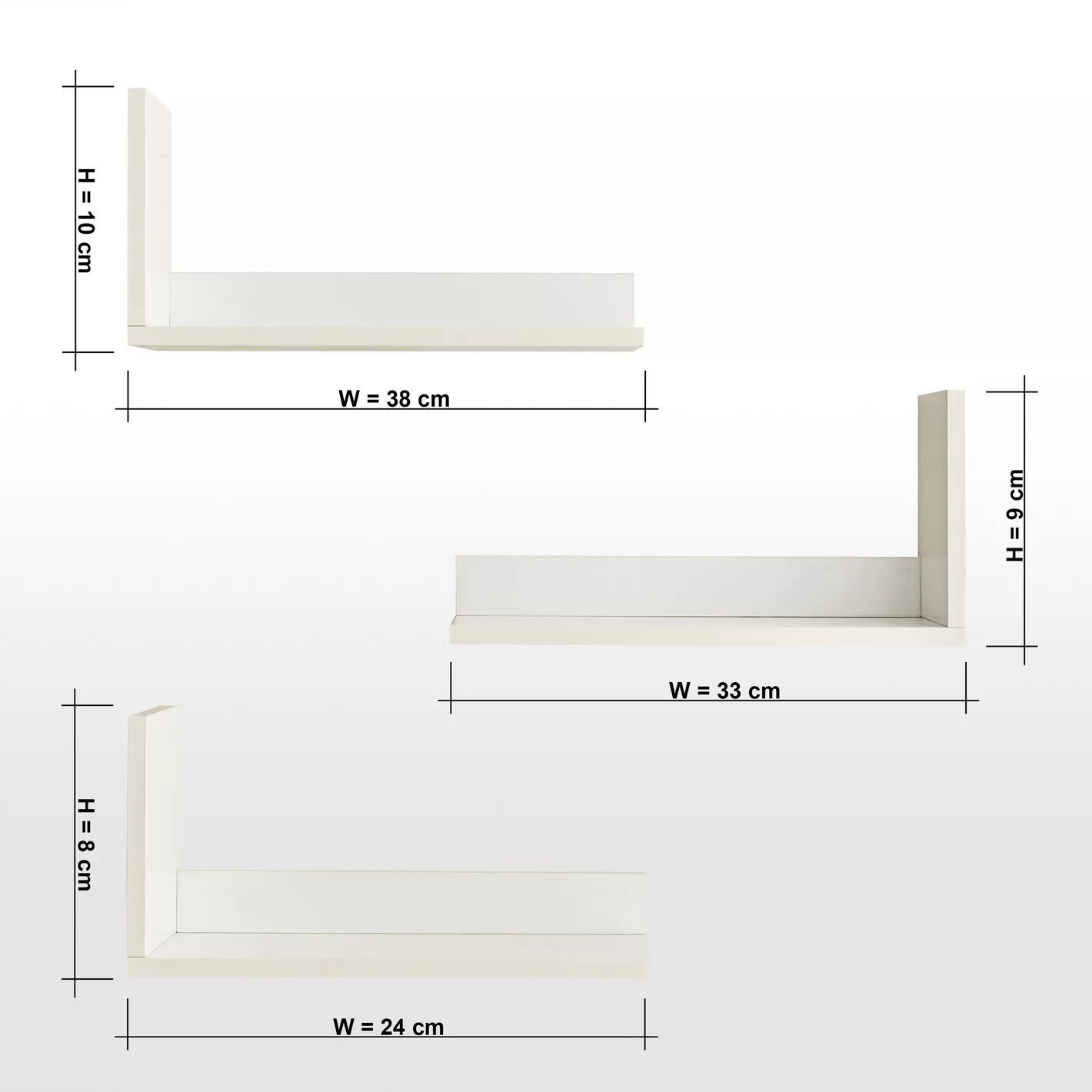 - رف3 x العمق: 10 سم x الارتفاع: 10 سم x العرض: 38 سم